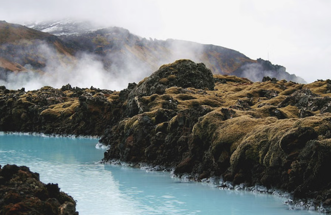 Volcano Hike and Blue Lagoon Scenic stop over the new lava fieldFamily relaxing at the Blue LagoonVolcano hike on Reykjanes peninsulaBlack lavaOcean view from the volcano hikeBláa LóniðVisitors relaxing in the Blue Lagoon