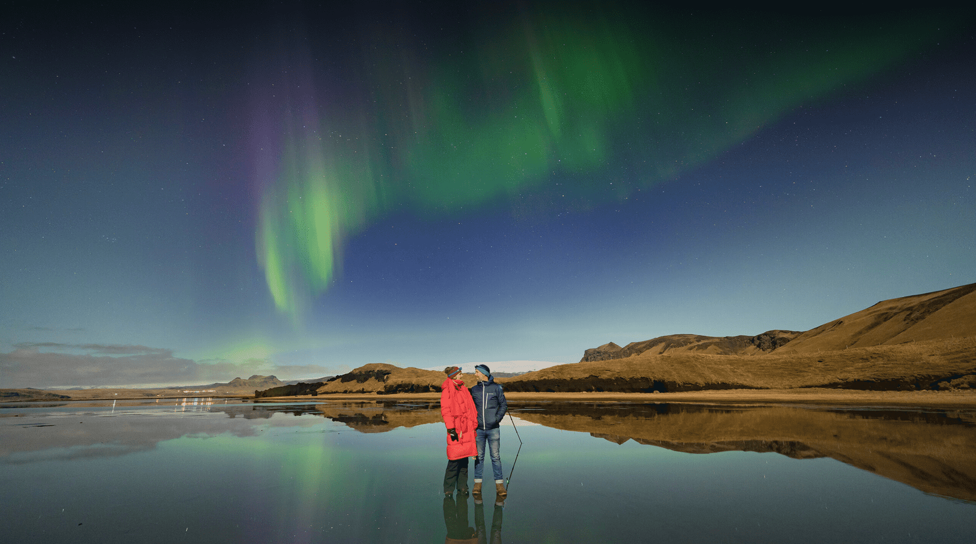 Katarina and Grétar at Svinafellsjökull under the Northern Lights
