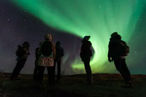 Al calar della notte, lanciatevi in una caccia guidata all'aurora boreale, avventurandovi nella campagna islandese per ammirare l'inafferrabile aurora boreale. Le guide esperte utilizzano dati meteorologici e solari in tempo reale per massimizzare le vostre possibilità di assistere a questo spettacolo di luci naturali.
