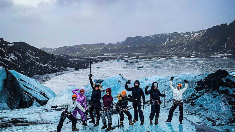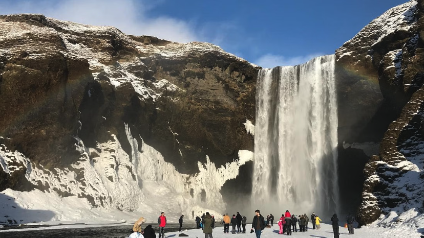 3-Day Golden Circle and South Shore Skógafoss waterfall surrounded by snowMagnificent view from a natural ice caveReynisfjara black sand beachExplorers posing on a glacier hikeJökulsárlón glacier LagoonStrokkur erupting at GeysirTraveller posing under the northern lightsNorthern lights over a farm house