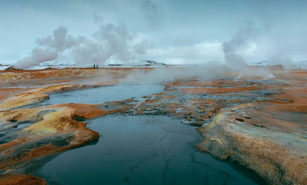 - Námaskarð – A geothermal area with steaming vents and bubbling mud pools
